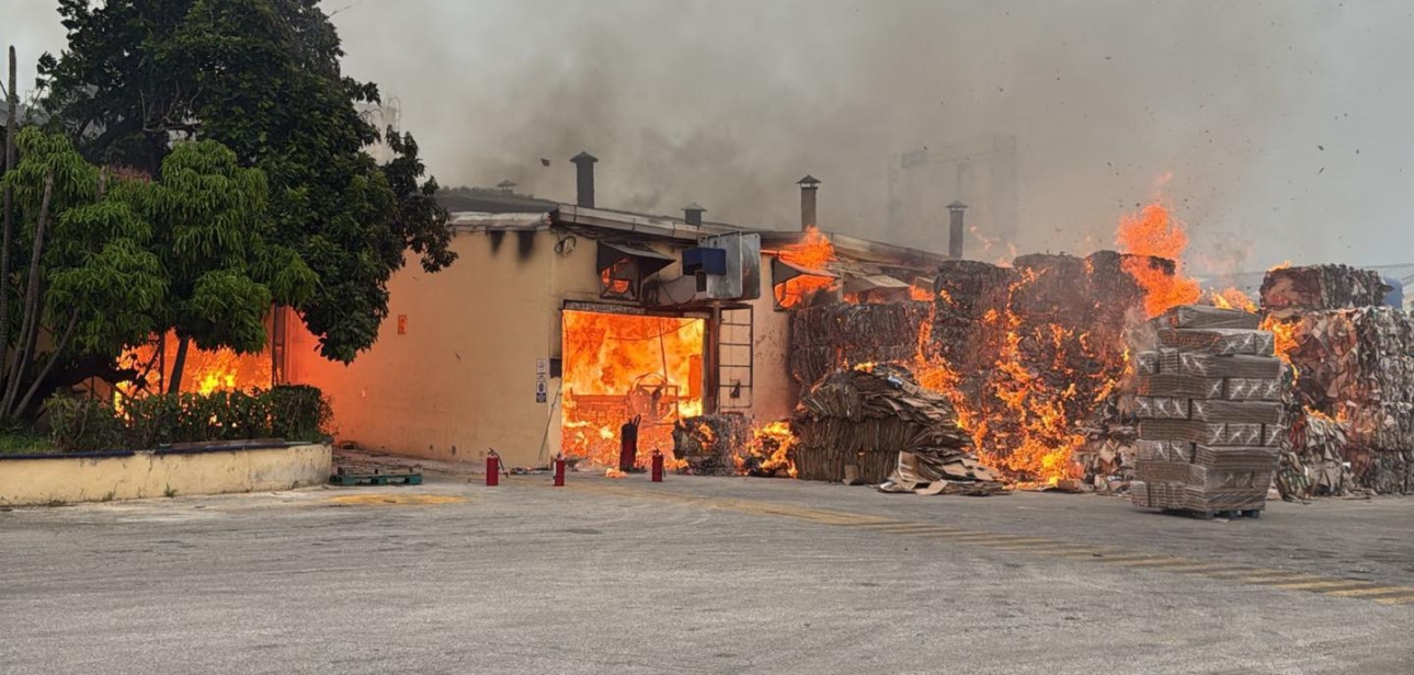 A través del número de emergencias 9-1-1 se recibió el reporte de un incendio en la planta de cartón de una empresa avícola ubicada en el kilómetro 44 del periférico de Mérida. El siniestro se originó en el área de procesamiento de cartón, material altamente inflamable.